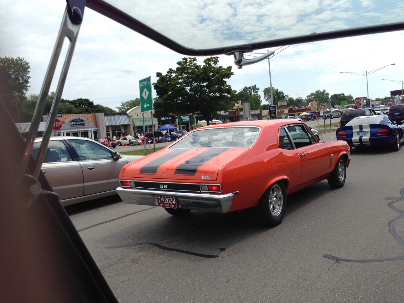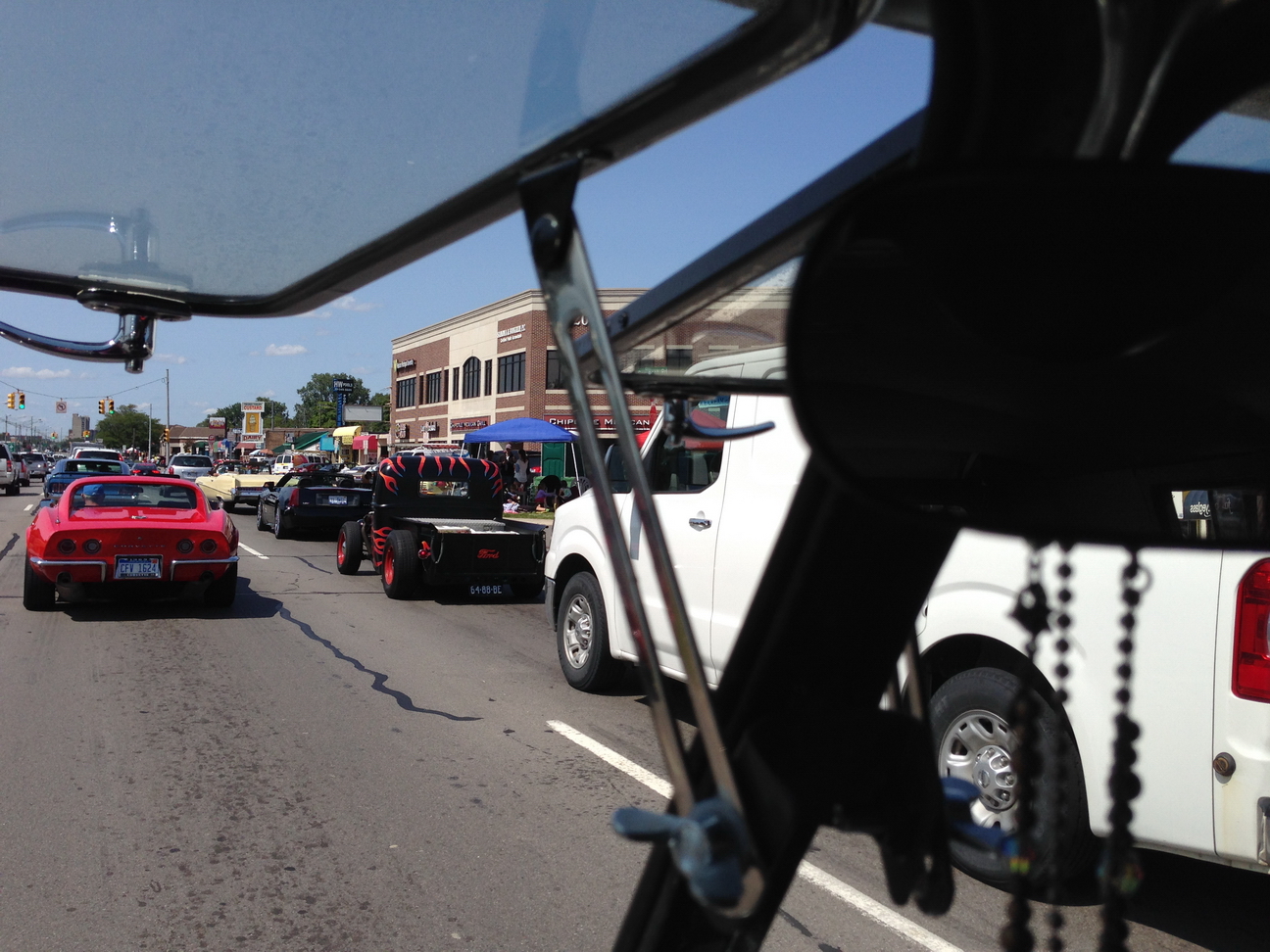 a lead-up event to the Woodward Dream Cruise. Fast forward to 21:30 and watch Karen Minor rockin' out in the Short Bus! We were playing "Bad to the Bone". LOUD The beautiful red '65 Mustang in front of us belongs to Sally Minor, driving with Tom Minor and Monica Minor. Karen's brother, Dennis, came out in the middle of the street to take pictures! 52:35 |